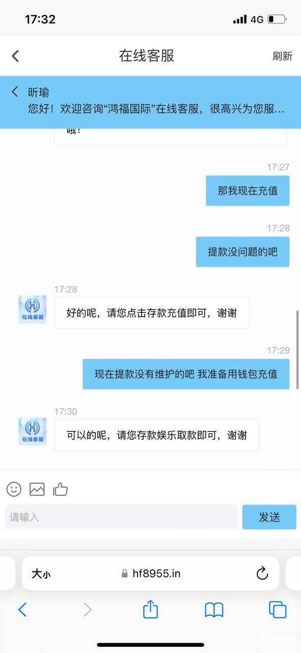 鸿福国际 网址https://m.hf8955.in 300块钱出不起 一直说系统维护
