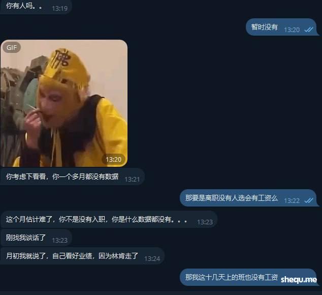 我告诉你们自从他来了就没把他当老大看,除了见面当着他假装笑嘻嘻在公司的零食饮料我就拼命多喝喝不完我就带回来,老娘管你是什么,现在说什么没业绩就要让我自己考虑是继续留着岗位还是离职,如果没业绩被开除就没有底薪,最后被我跟那个所谓的胖总监说我自己离职就给我正常算工资,这让我天天在家等护照等了十几天才下来,还扣我钱